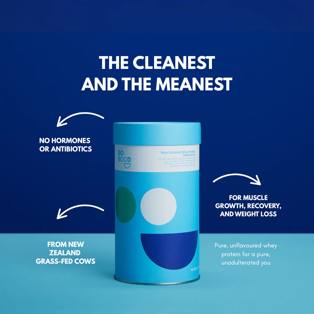 Fuel your day the Go Good way with our Unflavoured Whey Protein Powder, made from grass-fed New Zealand whey with nothing added and nothing taken away. Pure, neutral, and easy to digest this is protein in its most natural form.